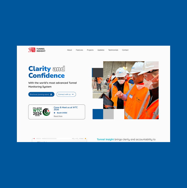 An industry-focused website delivered for a project by Gamuda Technology, presenting advanced tunnel monitoring solutions with clear structure and strong technical credibility.